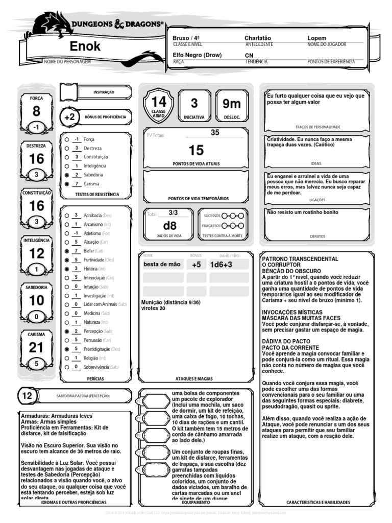 NOME DO PERSONAGEM RAÇA TENDÊNCIA PONTOS DE EXPERIÊNCIA