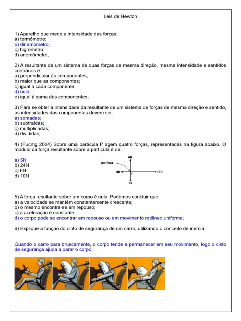 6) Explique a função do cinto de segurança de um carro, utilizando o conceito de inércia.