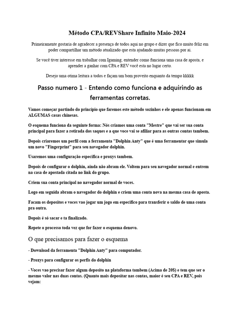 Método CPA/REVShare Infinito Maio-2024