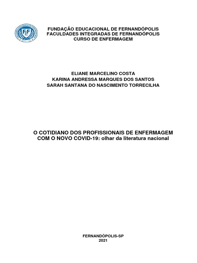 de enfermagem. FEF, FIFE, CEO, 2021..........................................................................24