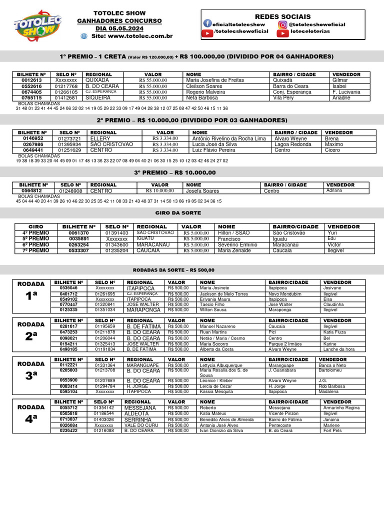 DIA 05.05.2024 /totolecshowoficial loteceloterias