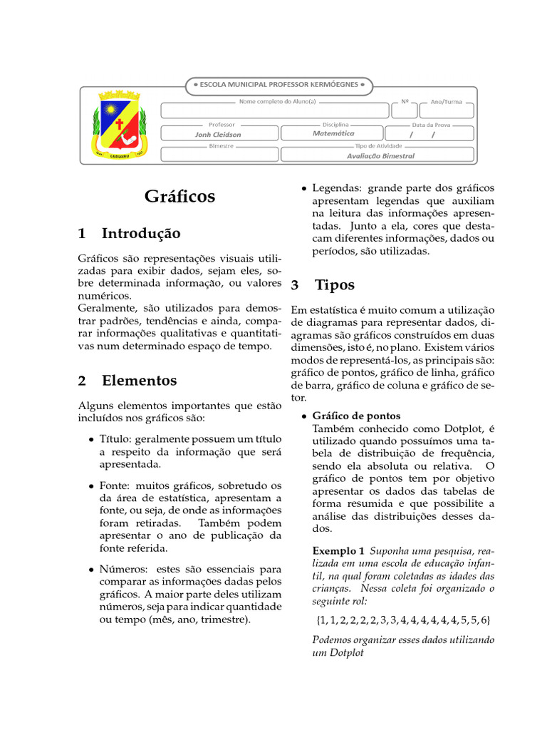 incluı́dos nos gráficos são: • Gráfico de pontos