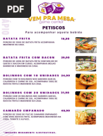 Cardápio Variado com Salgados e Bebidas