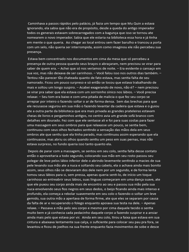 esteja certa. – Continuaram mais um tempo ali deitados aproveitando a companhia um