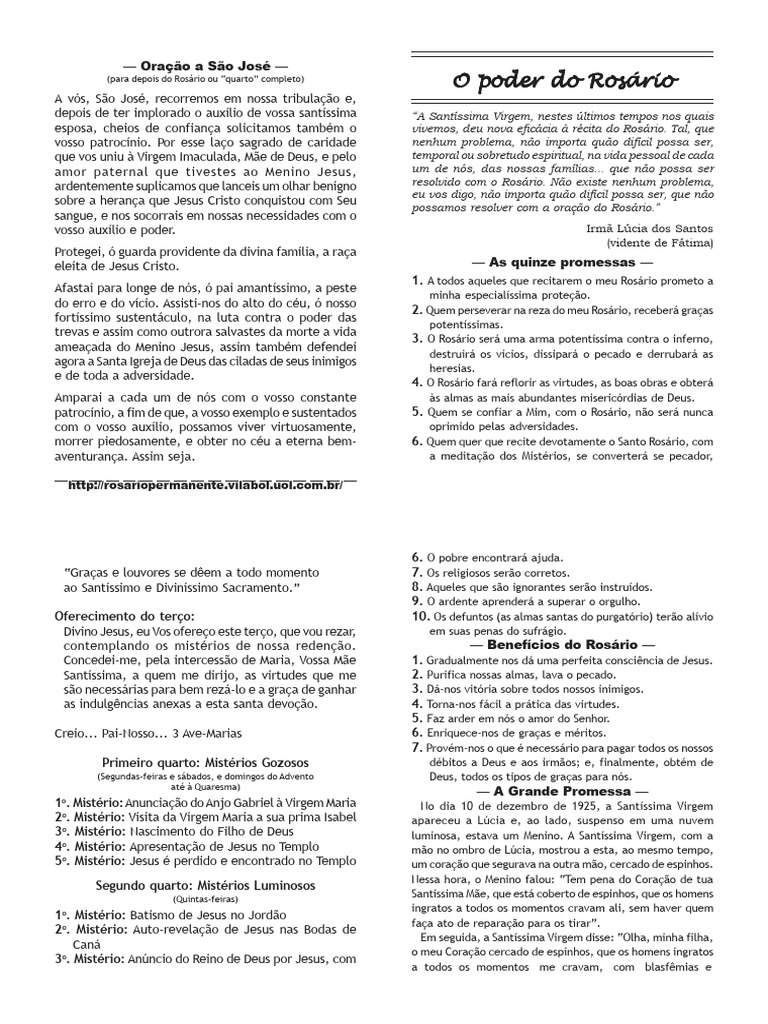 ardentemente suplicamos que lanceis um olhar benigno resolvido com o Rosário. Não existe nenhum problema,