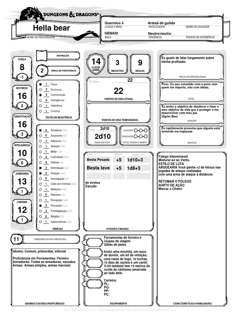 NOME DO PERSONAGEM RAÇA TENDÊNCIA PONTOS DE EXPERIÊNCIA