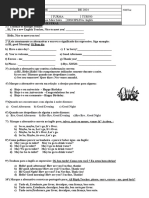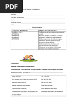 PROFESSOR(a): Ana Mira Sales DISCIPLINA: Inglês