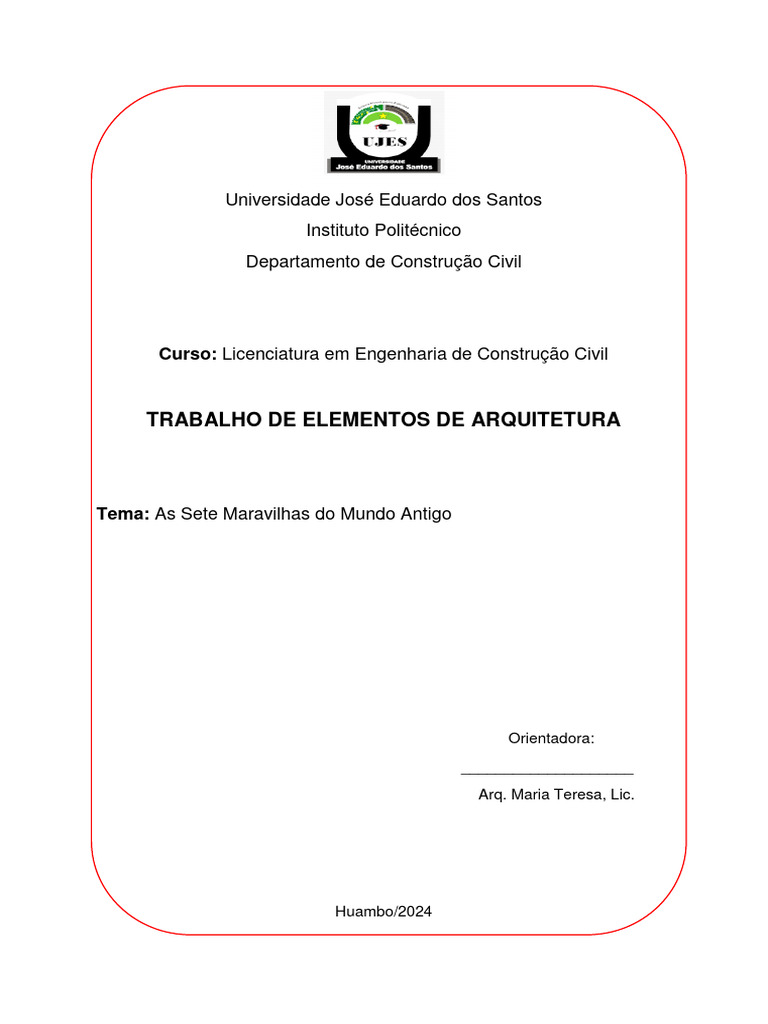 Tema: As Sete Maravilhas do Mundo Antigo