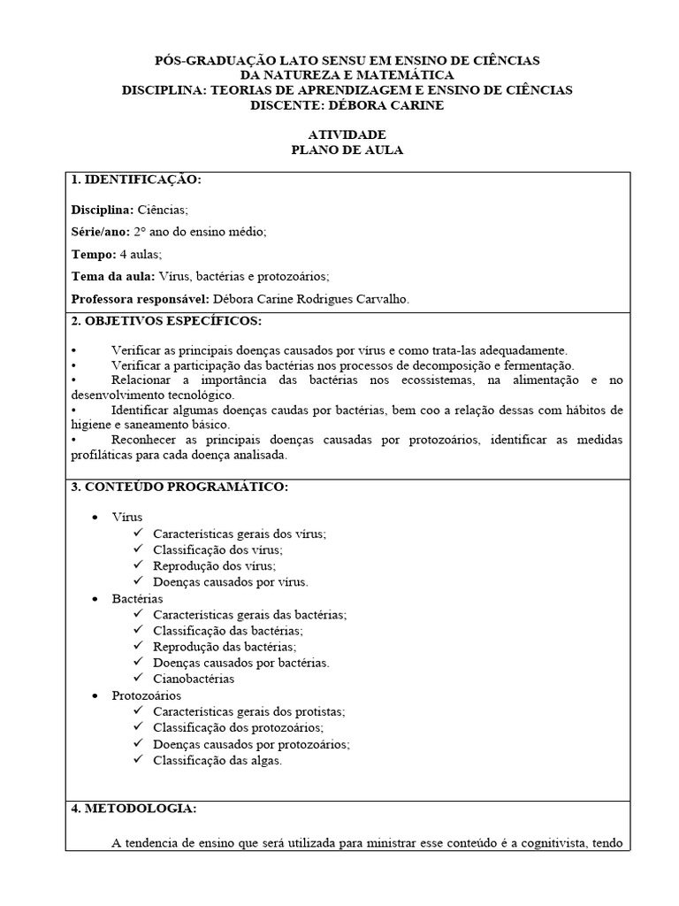 DISCIPLINA: TEORIAS DE APRENDIZAGEM E ENSINO DE CIÊNCIAS