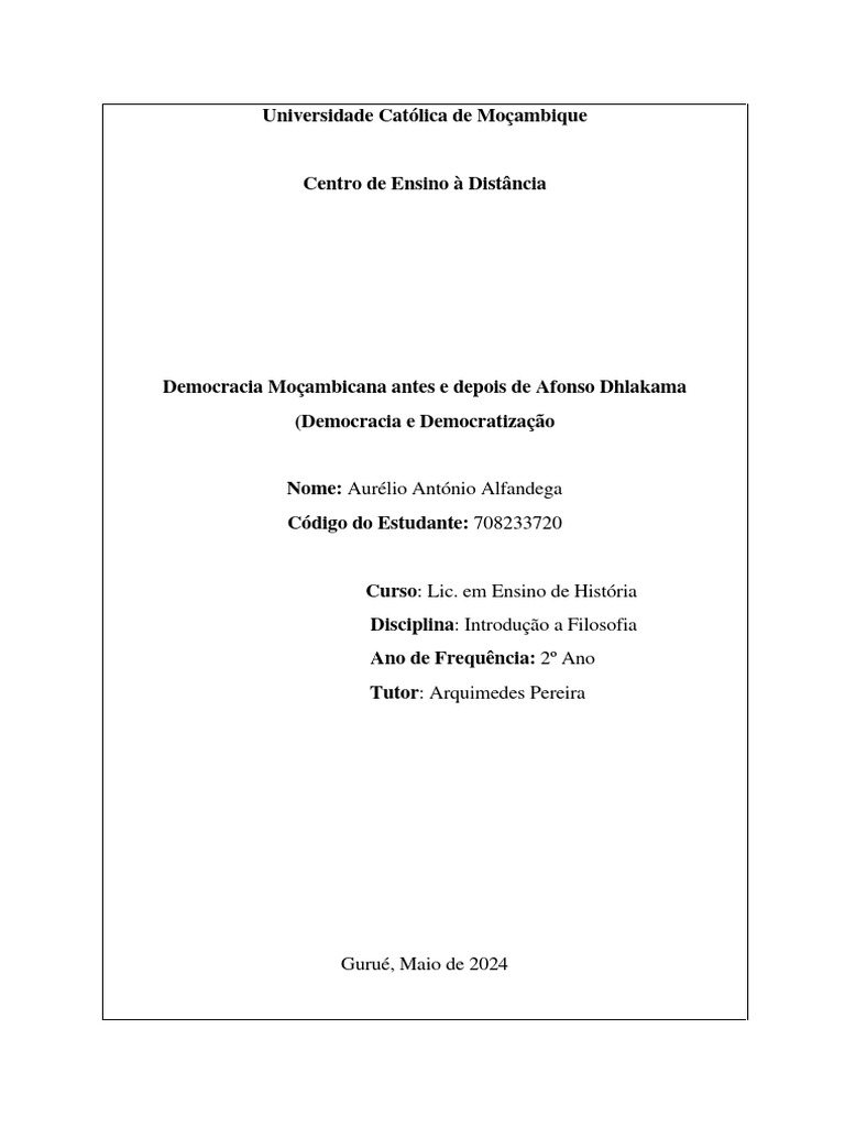 Democracia Moçambicana antes e depois de Afonso Dhlakama