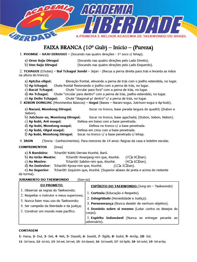 EU PROMETO ESPÍRITO DO TAEKWONDO (Jung-sin – Taekwondo)