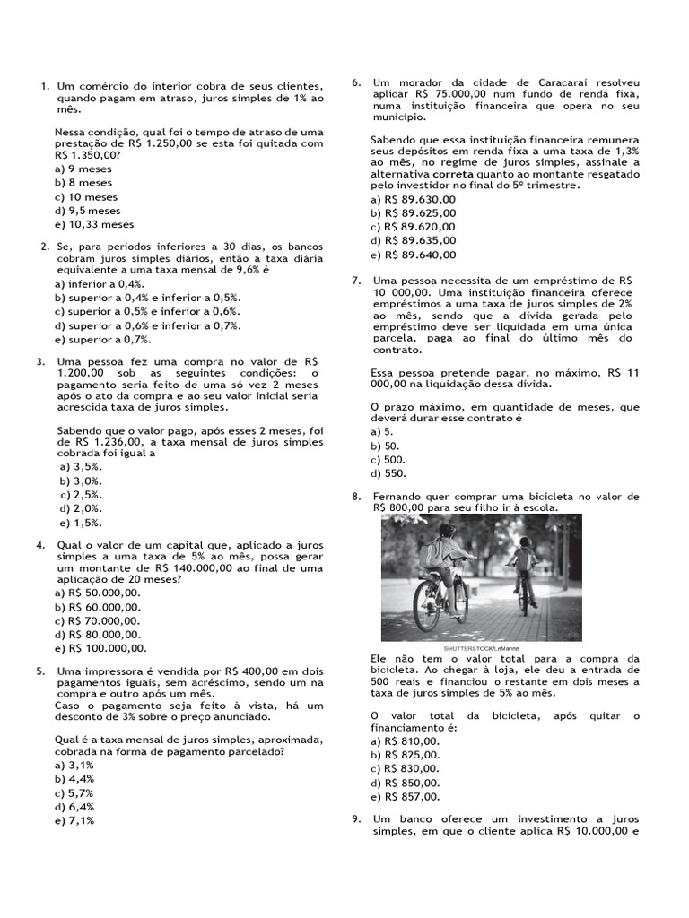 c) 2,5%. 8. Fernando quer comprar uma bicicleta no valor de