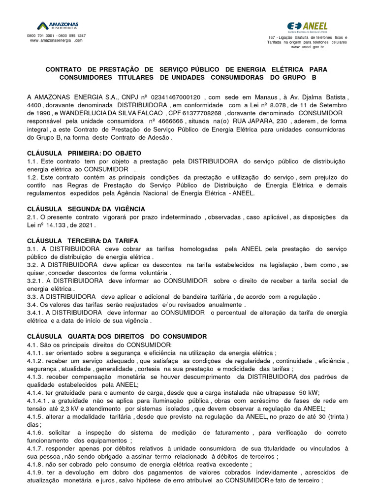 integral , a este Contrato de Prestação de Serviço Público de Energia Elétrica para unidades consumidoras