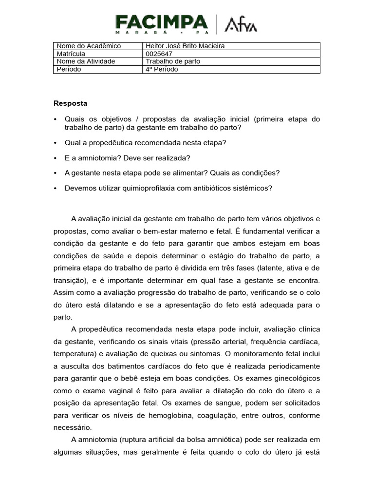 A avaliação inicial da gestante em trabalho de parto tem vários objetivos e