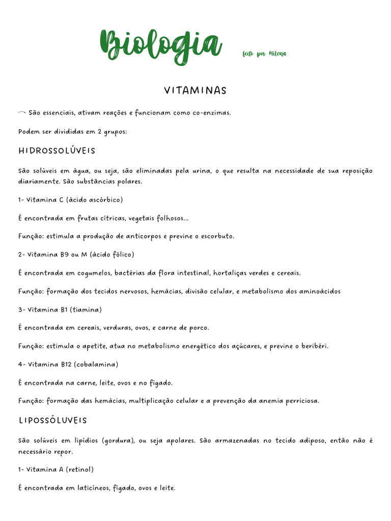 Função: formação das hemácias, multiplicação celular e a prevenção da anemia perriciosa.