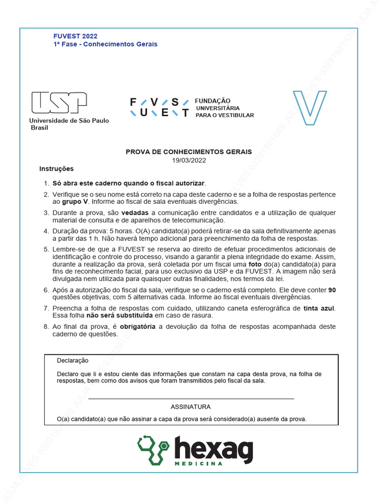 Prova de Conhecimentos Gerais FUVEST 2022