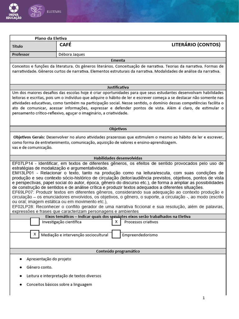 Eixos temáticos – Indicar quais dos seguintes eixos serão trabalhados na Eletiva