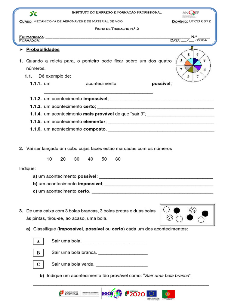 1.1.4. um acontecimento mais provável do que “sair 3”; __________________________