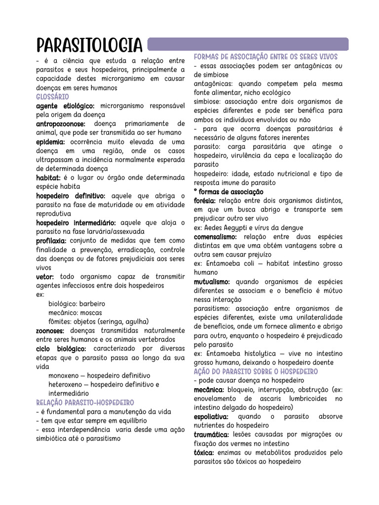parasitos e seus hospedeiros, principalmente a