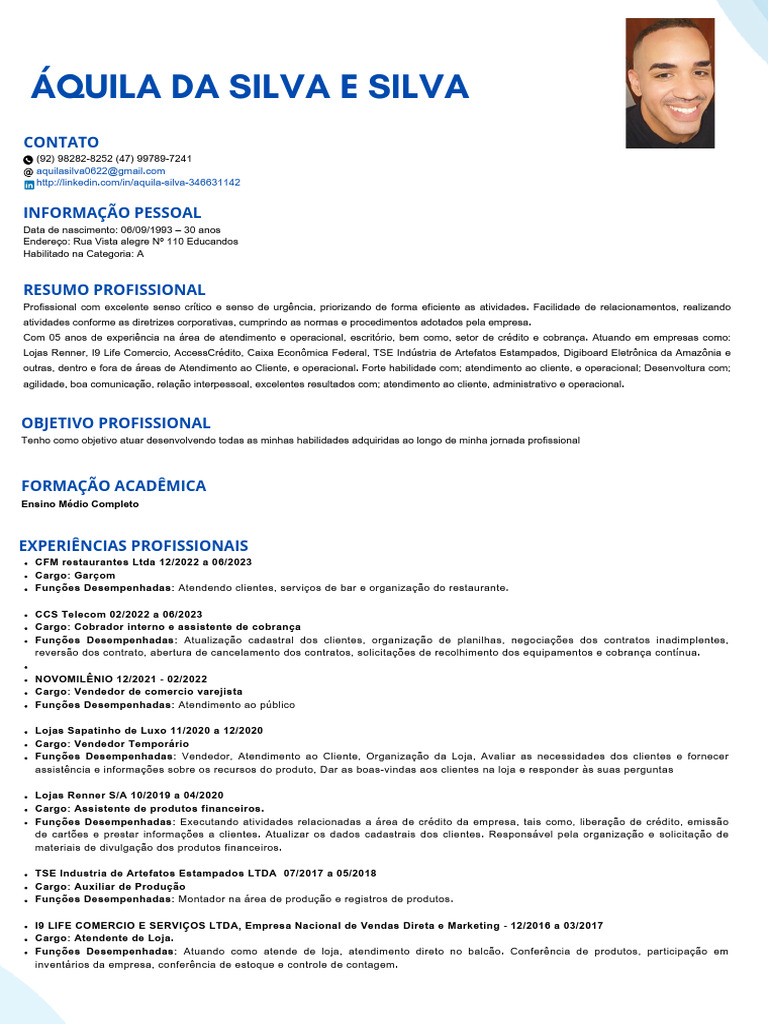 Com 05 anos de experiência na área de atendimento e operacional, escritório, bem como, setor de crédito e cobrança. Atuando em empresas como:
