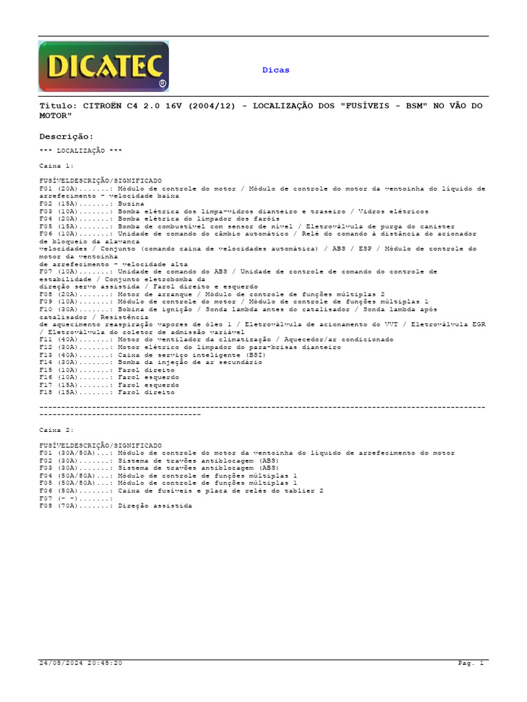 Título: CITROËN C4 2.0 16V (2004/12) - LOCALIZAÇÃO DOS "FUSÍVEIS - BSM" NO VÃO DO