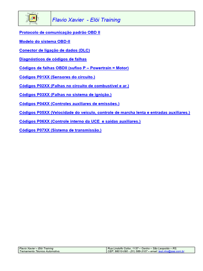 Treinamento Técnico Automotivo. CEP: 98010-080 - (51) 589-3107 – email: [Link]@[Link]
