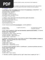 b) sujeito objeto direto; c) objeto direto sujeito; d) sujeito sujeito; e) objeto direto objeto indireto. 7. Recebeu o prmio o jogador que fez o gol. Nessa frase o sujeito de fez ? a) o prmio; b) o jogador; c) que; d) o gol; e) recebeu. 8. Assinale a alternativa correspondente ao perodo onde h predicativo do sujeito: a) como o povo anda tristonho ! b) agradou ao chefe o novo funcionrio; c) ele nos garantiu que viria; d) no Rio no faltam diverses; e) o aluno ficou sabendo hoje cedo de sua aprovao. 9. Em: Cravei-lhe os dentes na carne, com toda a fora que eu tinha, a palavra que tem funo morfossinttica de: a) pronome relativo sujeito; b) conjuno subordinada conectivo; c) conjuno subordinada complemento verbal; d) pronome relativo objeto direto; e) conjuno subordinada objeto direto. 10. Assinale a alternativa em que a expresso grifada tem a funo de complemento nominal: a) a curiosidade do homem incentiva-o a pesquisa; b) a cidade de Londres merece ser conhecida por todos; c) o respeito ao prximo dever de todos; d) o coitado do velho mendigava pela cidade; e) o receio de errar dificultava o aprendizado das lnguas. 11. Amanh, sbado, no sairei de casa, a palavra grifada, funciona como: a) objeto direto; b) objeto indireto; c) agente da passiva; d) complemento nominal; e) aposto. 12. E no se diga que Mrio Quintana haja sido insensvel s legtimas exigncias da potica contempornea. O termo grifado desempenha a funo