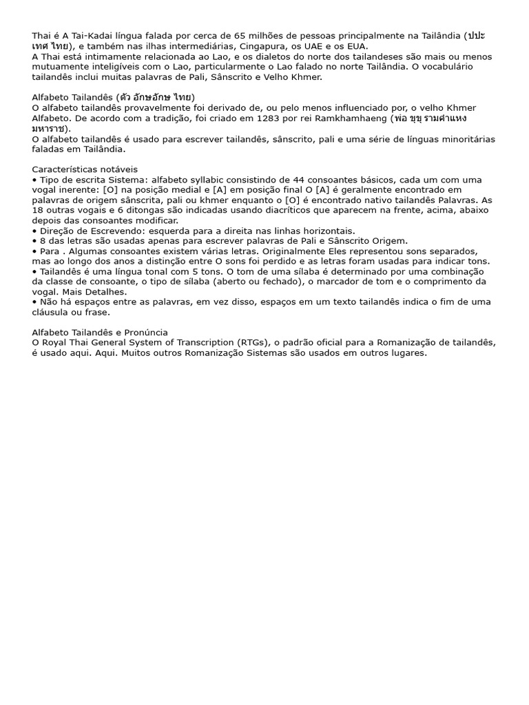 • Não há espaços entre as palavras, em vez disso, espaços em um texto tailandês indica o fim de uma
