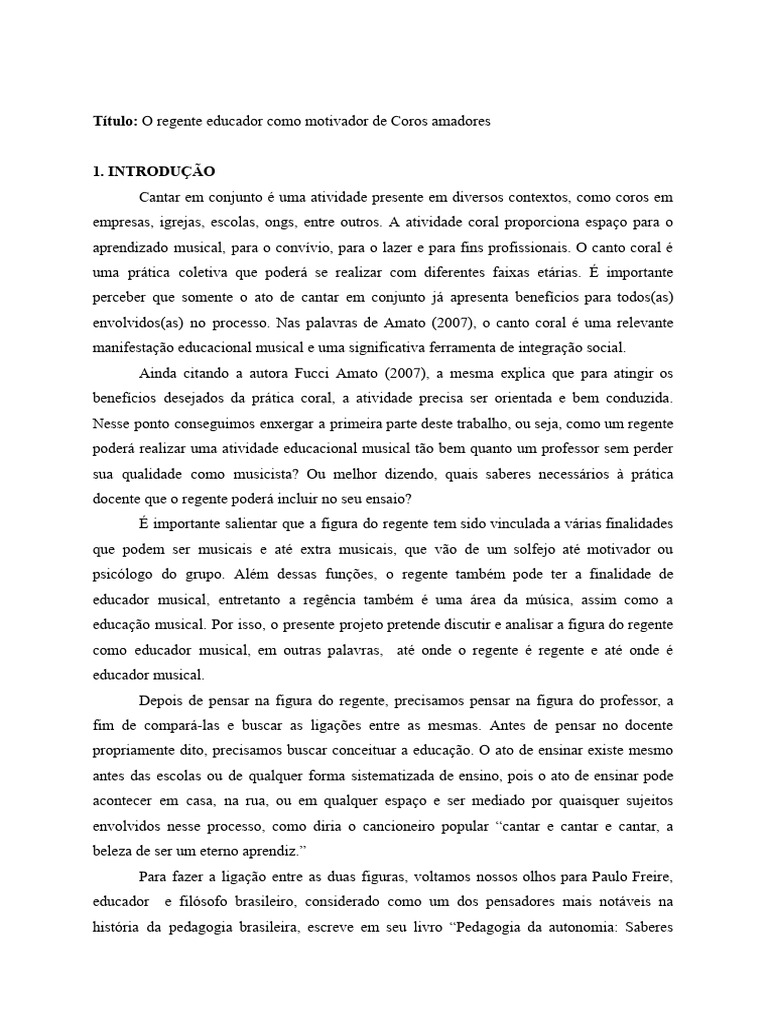 coral como ferramenta de educação musical utilizando-se referenciais freirianos. Educação