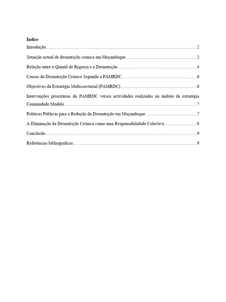 Políticas Públicas para a Redução da Desnutrição em Moçambique..............................................7