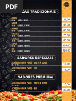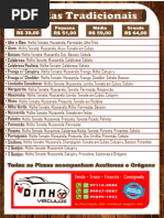 molho, mussarela, presunto, calabresa, frango, azeitona, milho e orégano