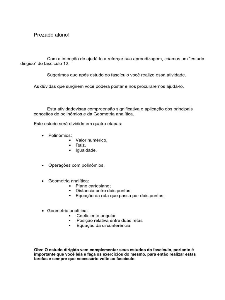Obs: O estudo dirigido vem complementar seus estudos do fascículo, portanto é