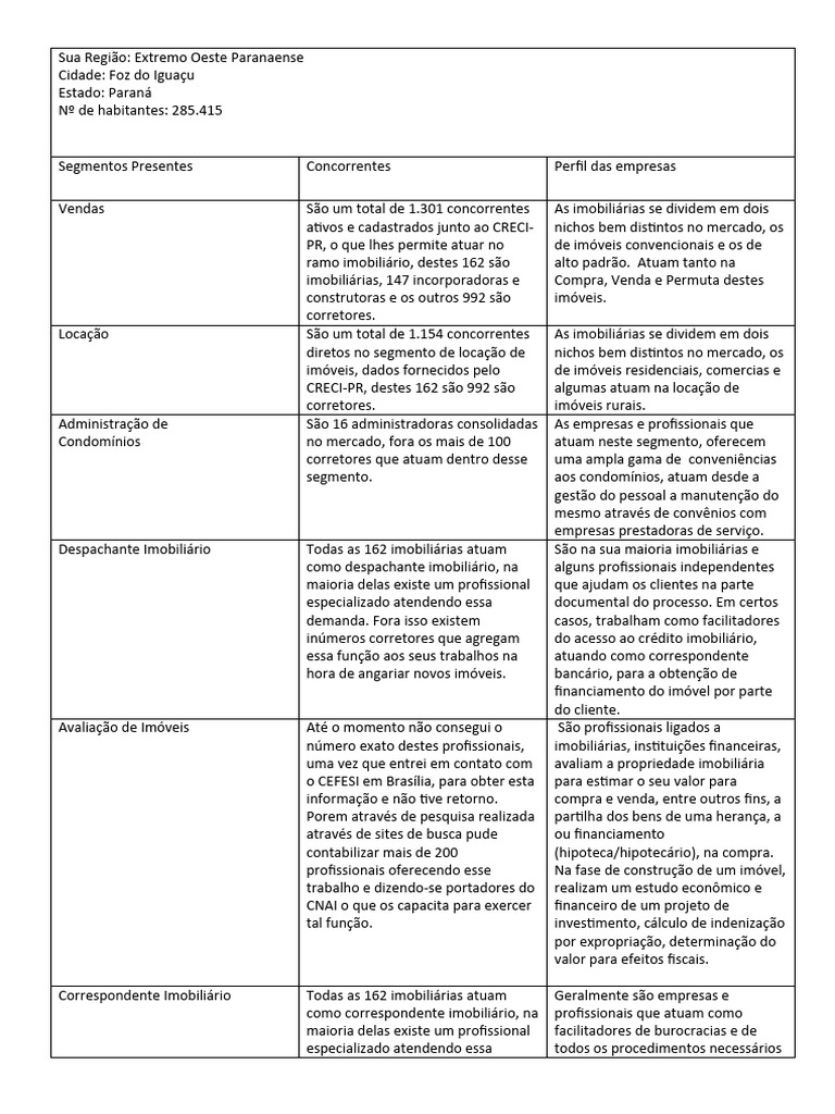 Vendas São um total de 1.301 concorrentes As imobiliárias se dividem em dois
