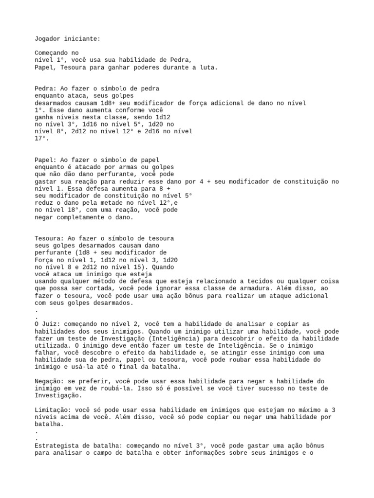 de pedra, e todas as suas habilidades de papel contra eles têm vantagem.