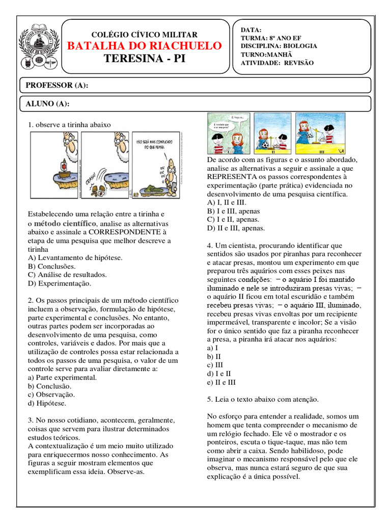 COLÉGIO CÍVICO MILITAR TURMA: 8º ANO EF