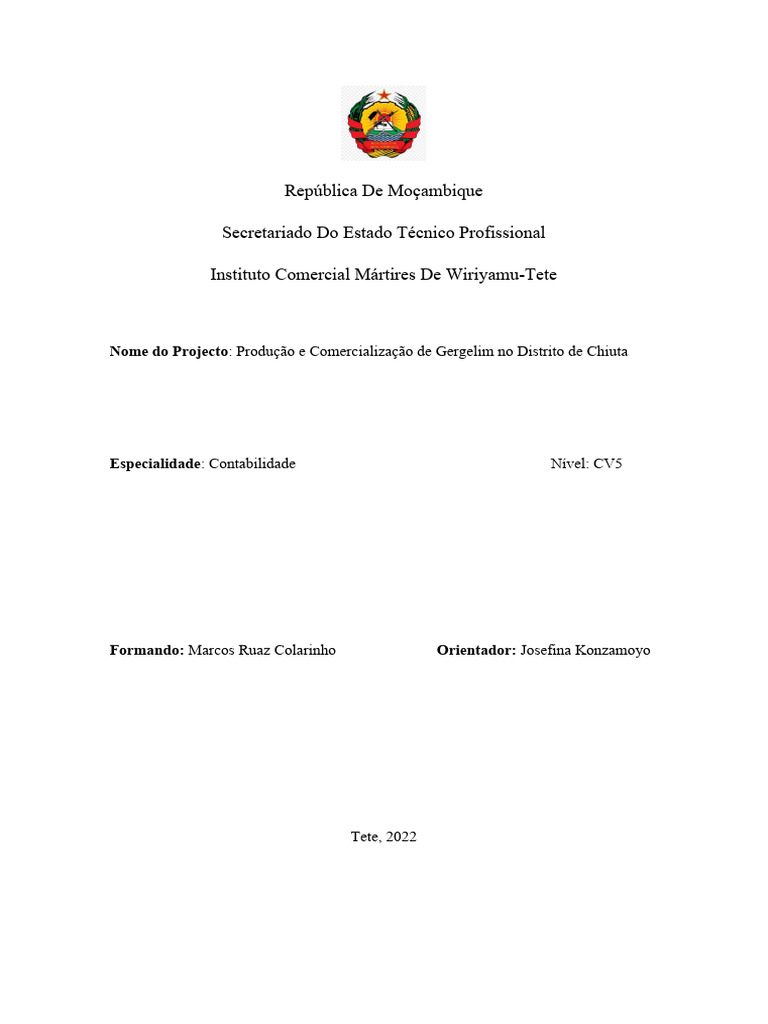 Nome do Projecto: Produção e Comercialização de Gergelim no Distrito de Chiuta