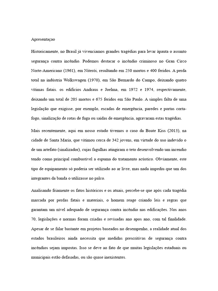 garantam um nível adequado de segurança contra incêndio nas edificações. Nos anos