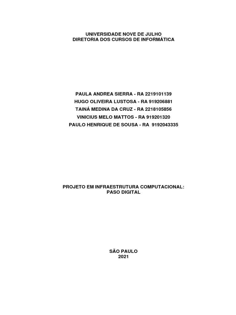 PROJETO EM INFRAESTRUTURA COMPUTACIONAL:
