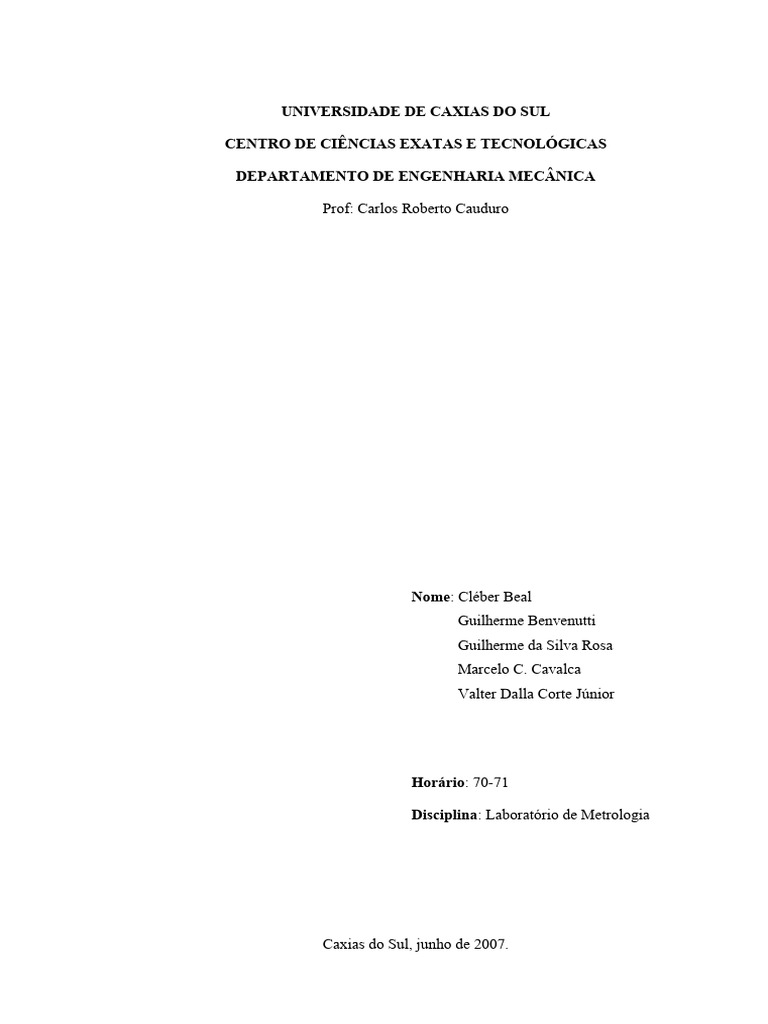 [3] Apostila da Disciplina de Metrologia. Engenharia Mecânica. Universidade de