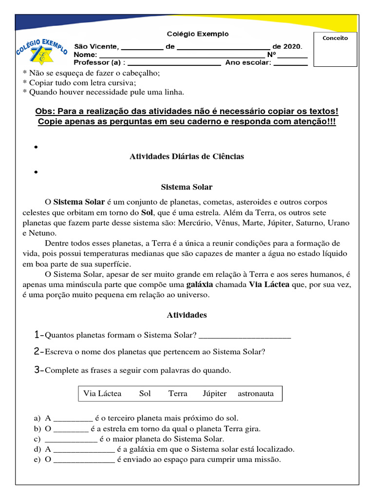 1- Quantos planetas formam o Sistema Solar? _____________________