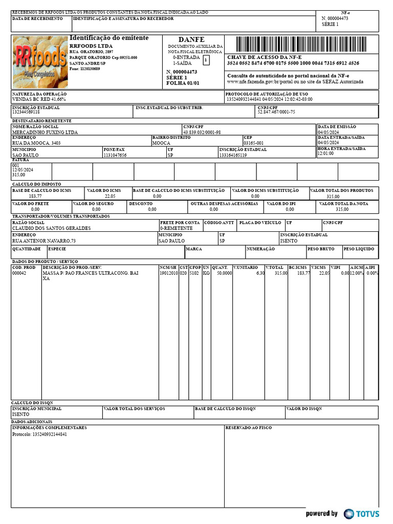 RRFOODS LTDA DOCUMENTO AUXILIAR DA