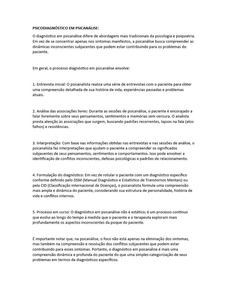 O diagnóstico em psicanálise difere de abordagens mais tradicionais da psicologia e psiquiatria.