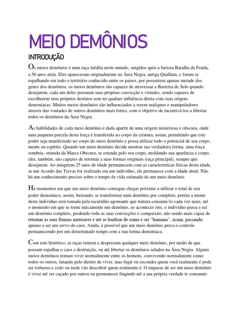 meio-demônio ao encontrar um demônio que consiga realizar um Acordo das Trevas.
