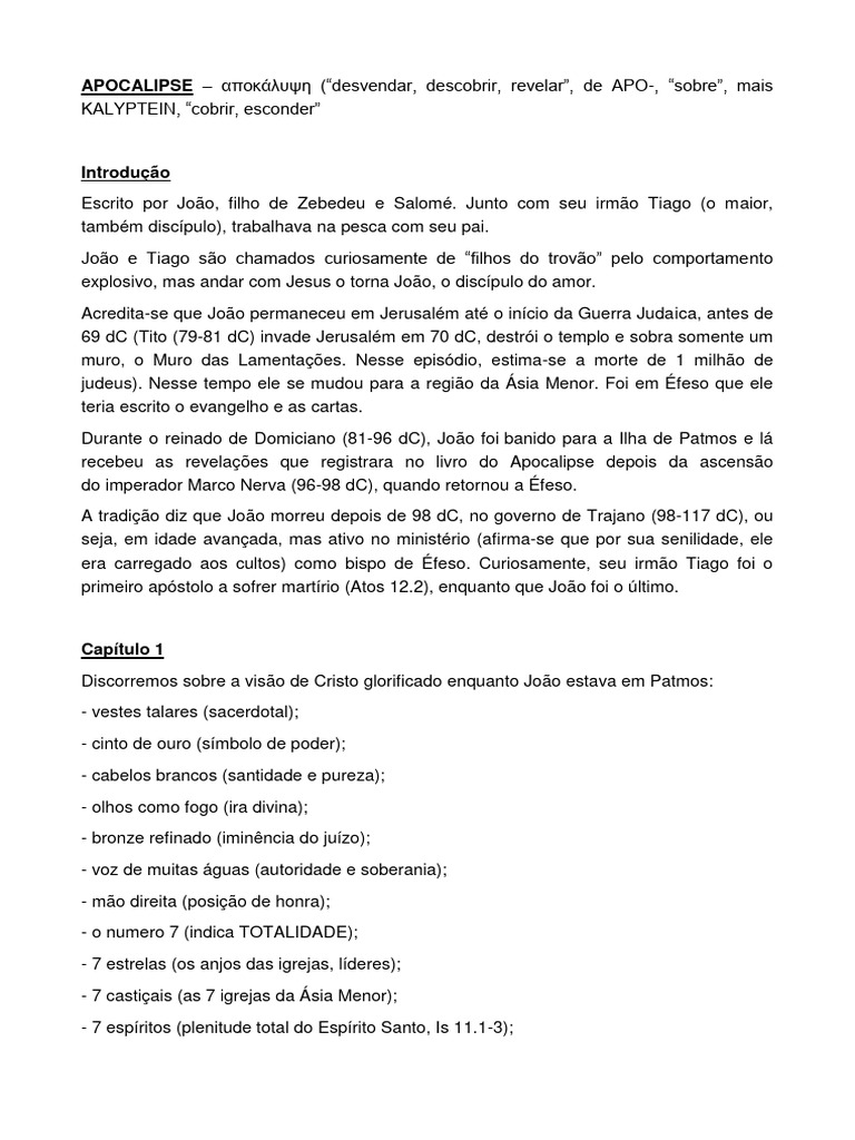 APOCALIPSE – αποκάλυψη (“desvendar, descobrir, revelar”, de APO-, “sobre”, mais