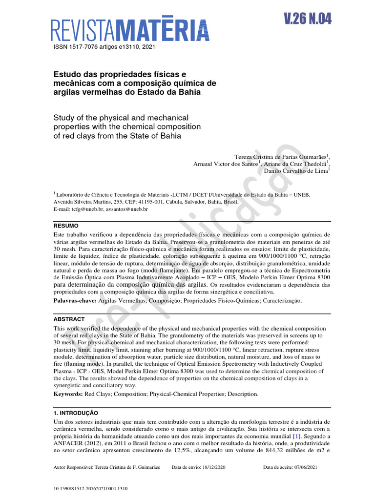 GUIMARÃES, T.C.F., SANTOS, A.V., THEDOLDI, A.C., et al., revista Matéria, v.26, n.4, 2021