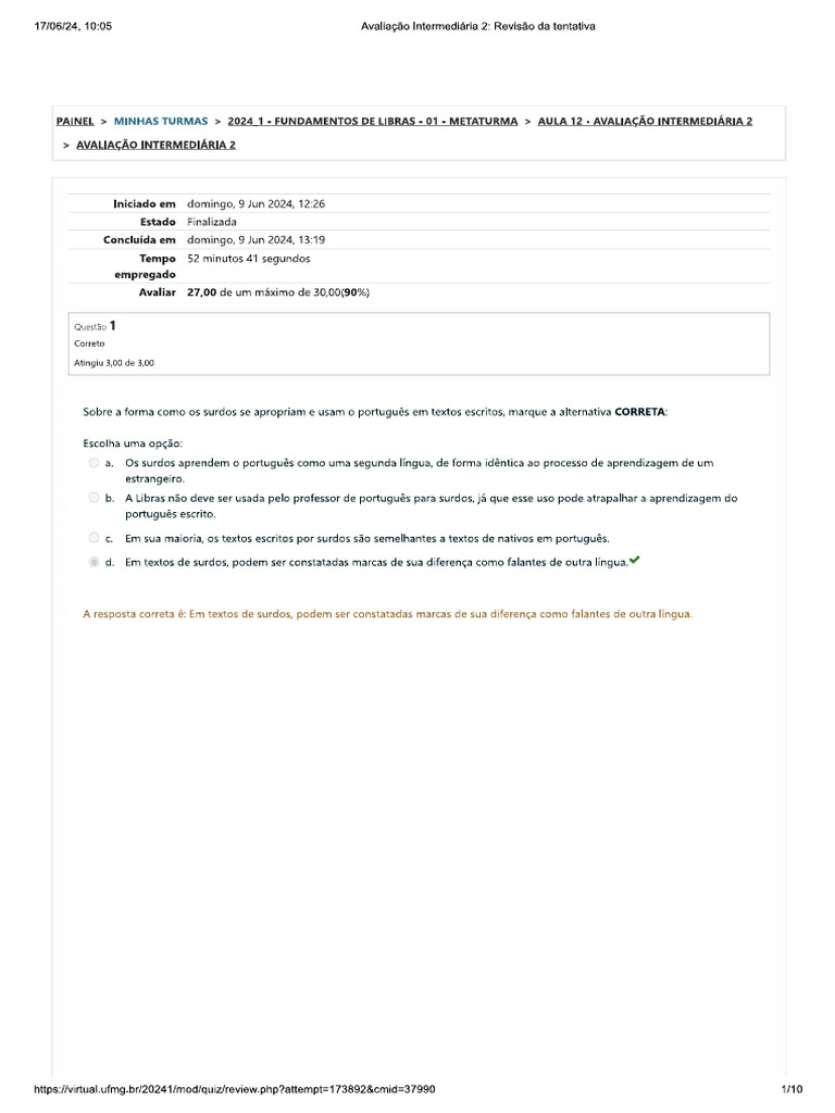 -ntpsfvitual uimg.br12024 1/modiquiireview.phpattempt=1738928cmid=37980 sn‘rin6i24, 10:05 ‘Avalago Intermediaia 2: Revisto da tentaiva
