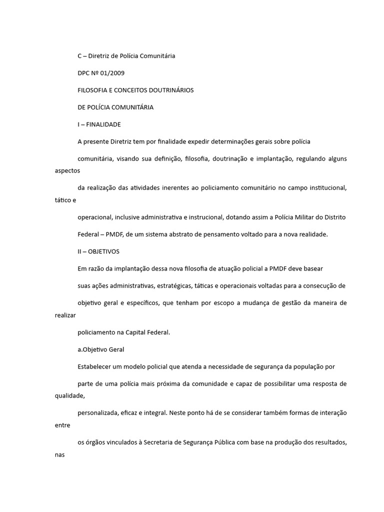 A presente Diretriz tem por finalidade expedir determinações gerais sobre polícia