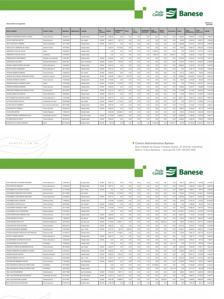 ANDRE PIRES LEAL Tecnico bancario 08/04/2024 Ag. Laranjeiras 30.00H 2.136,68 0,00 0,00 0,00 0,00 0,00 0,00 0,00 0,00 2.136,68 355,83 1.780,85