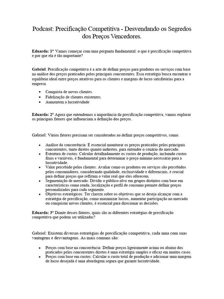 Eduarda: 1° Vamos começar com uma pergunta fundamental: o que é precificação competitiva