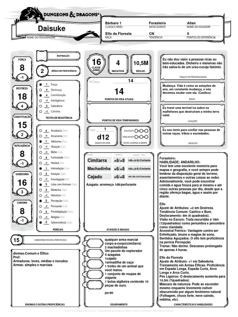 NOME DO PERSONAGEM RAÇA TENDÊNCIA PONTOS DE EXPERIÊNCIA